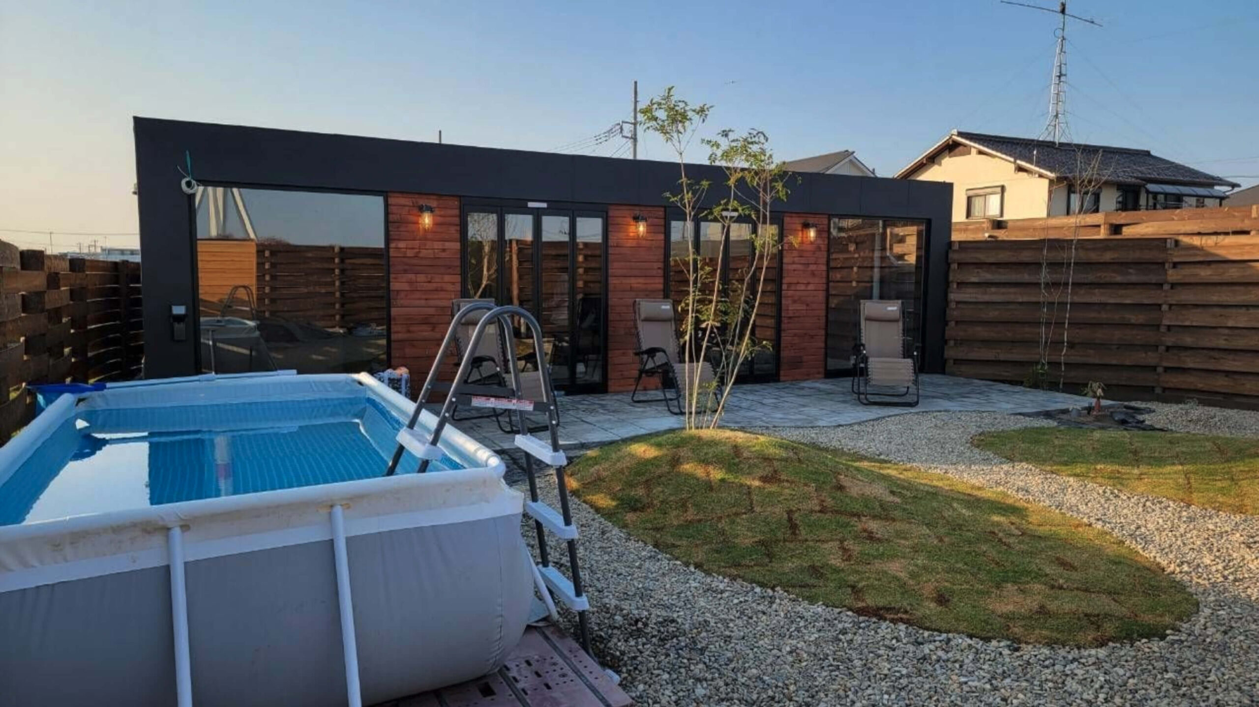 じっくりと汗をかき屋外プールにさっと浸かる