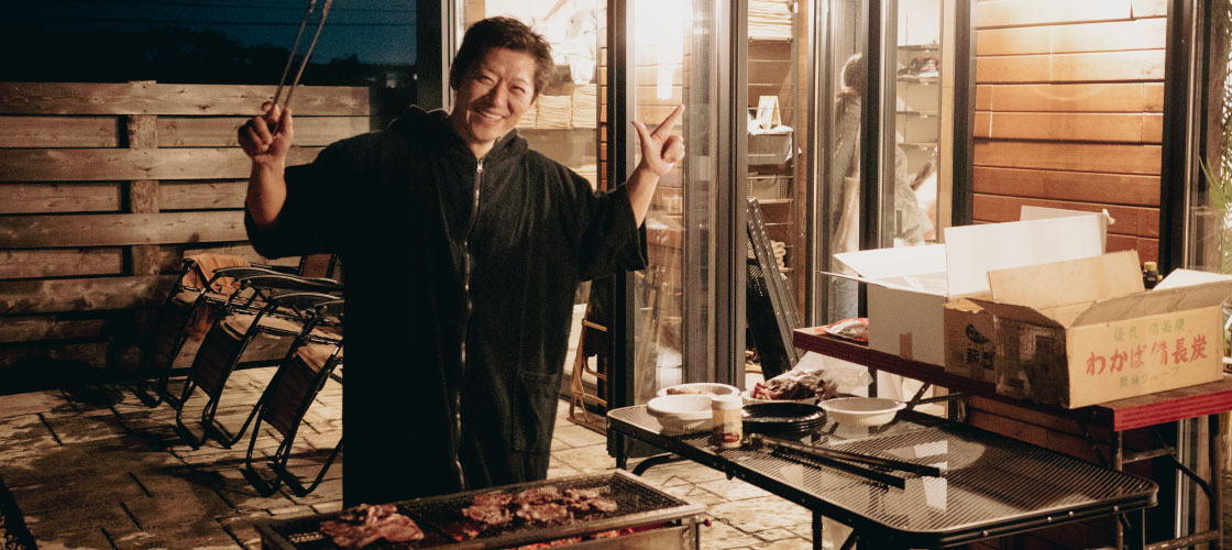 サウナに入り、水風呂を浴び、外気浴で冷ますという一連の流れを3回も繰り返すと今度は何か食べたくなるもの。“サウネアさいたま”ではなんとも言えない旨味に満ちていて誰しも思わずおかわりしたくなるオーナー特製のカレーに加え(事前予約必要)、BBQも楽しむことができます。若松社長はカナダ産の牛肉を持ち込まれて、炭火焼きでみんなに振舞っていました。身一つで来て、気軽にアウトドアを楽しむことができるのも“サウネアさいたま”の魅力の一つです。