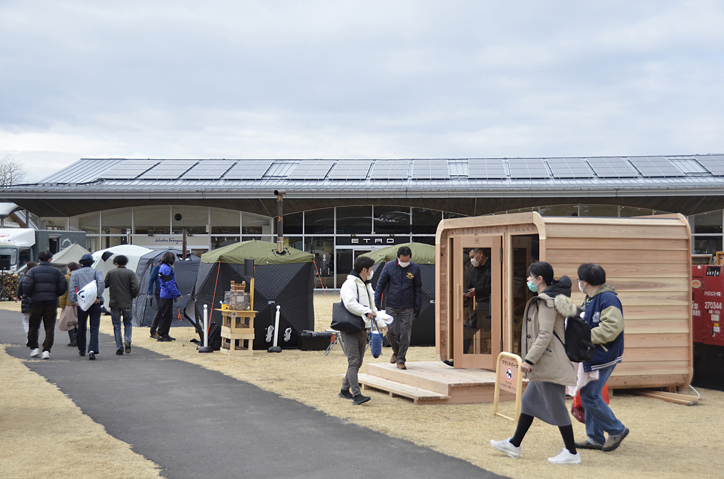 2月23日(祝・木)〜2月26日(日)の4日間、軽井沢・プリンスショッピングプラザ ガーデンモール芝生のひろば 特設会場で開催されている「ととのう、軽井沢〜サウナ体験〜」イベントに“RIISI 2000”を出展しております!軽井沢の冷たい気温の中、発電機を設置することで約100度まで温められたサウナ空間を体感することのできるイベントとなっており(手軽なサウナ体験を目的としたイベントのため、体験は着衣のまま数分間の熱気浴となります)、サウナを所有することの大きな楽しみの一つであるロウリュも自ら柄杓を手に持って試すことができます。私たちの“RIISI”のほかにもイベントでは様々なテントサウナやバレルサウナも展示されているので、比較しながら体験し、自分に合ったアウトドアサウナを探すことができます。