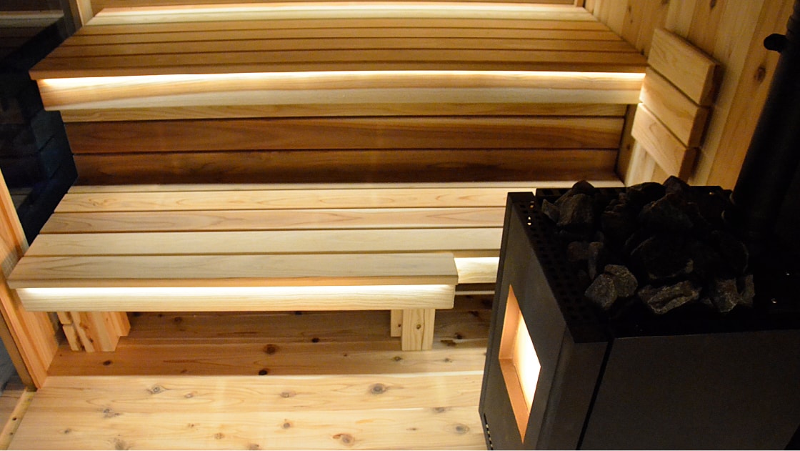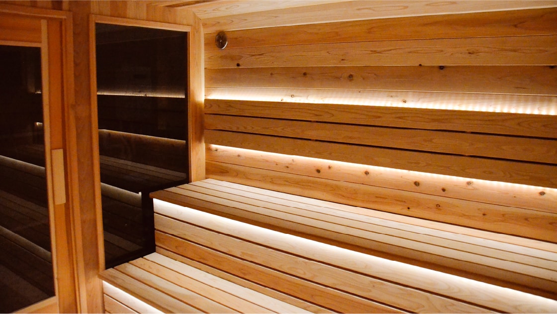 ゆったりとした空間の中、2段ベンチの設置も可能になり好みの温度帯を楽しめます。